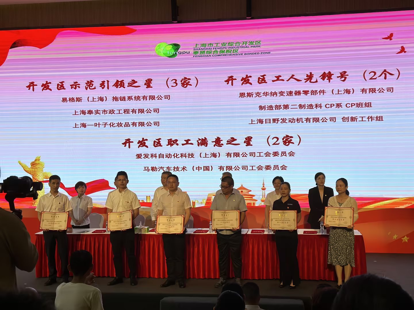 2023年7月1日上海市工業(yè)綜合開發(fā)區(qū)“踐行二十大 建功勇爭(zhēng)先”慶祝中國(guó)共產(chǎn)黨成立102周年表彰會(huì)順利舉行。愛發(fā)科自動(dòng)化科技(上海)有限公司工會(huì)委員會(huì)在表彰會(huì)上榮獲2022年度“上海市綜合開發(fā)區(qū)職工滿